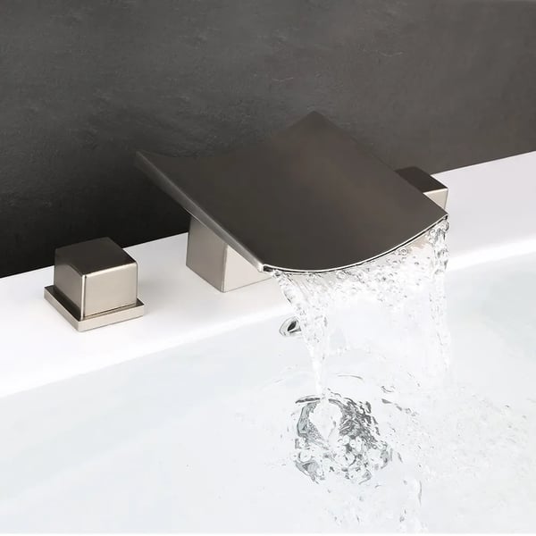 Grop Brushed Nickel Waterfall Widespread Bathroom Sink Faucet Double Handle