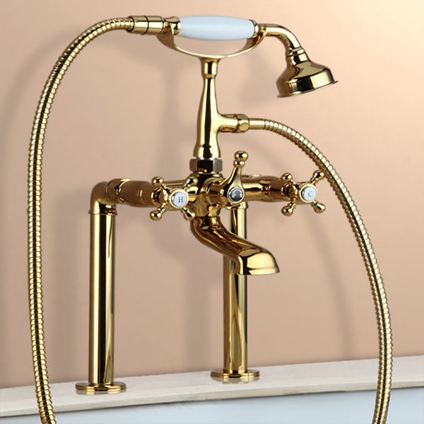 Waterfall Deck-Mount Modern Tub Faucet with Handshower in Chrome