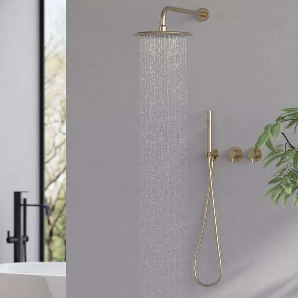10" Wall-Mounted Shower System Round Brushed Gold 2-Function with Hand Shower