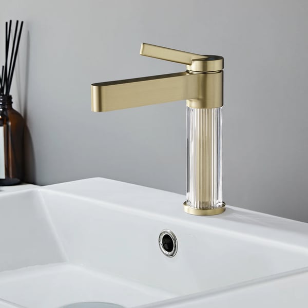 Luxury Brushed Gold Bathroom Faucet – Solid Brass Body with Acrylic Column