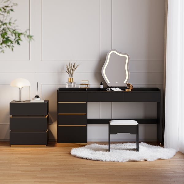 LED Mirror Makeup Vanity Set with 2 Smart Nightstands