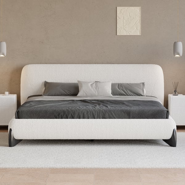 Curva Boucle King Upholstered Platform Bed with Walnut Legs