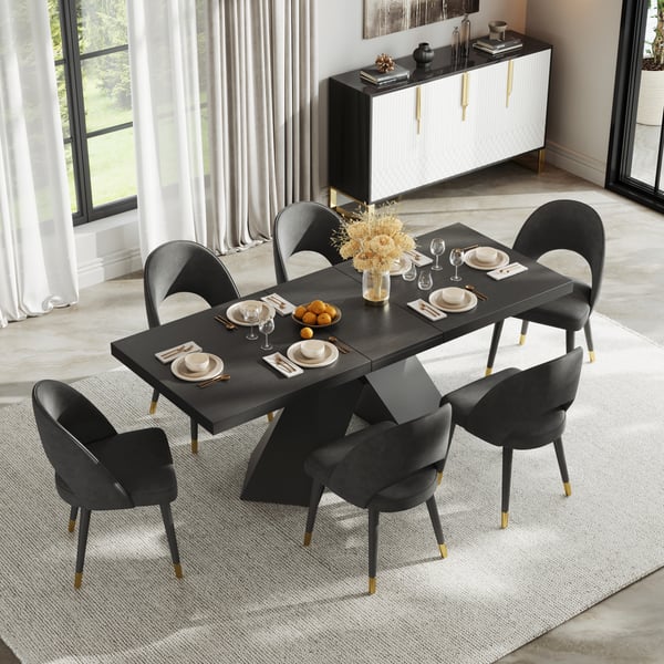 Dining Set 67"-79" Extendable Dining Table Black with 6 Chairs