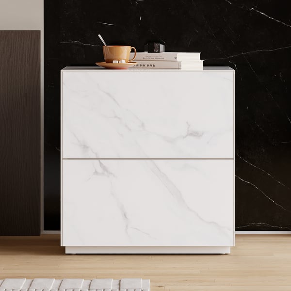 24" Sintered Stone Floor Nightstand with Drawer Set of 2