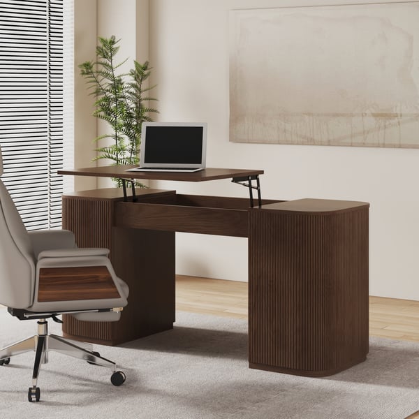 Modern Walnut Standing Writing Desk & Reclining Leather Office Desk Chair Set (59.8" )