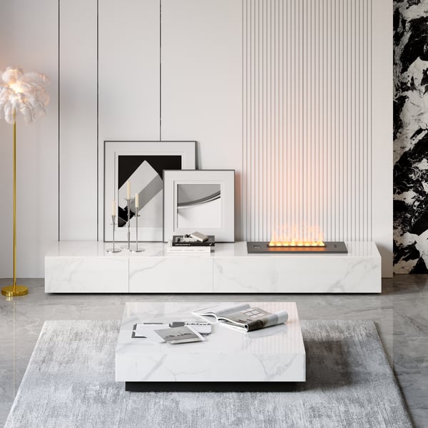 87" Sintered Stone Electric Fireplace TV Stand & Coffee Table Set