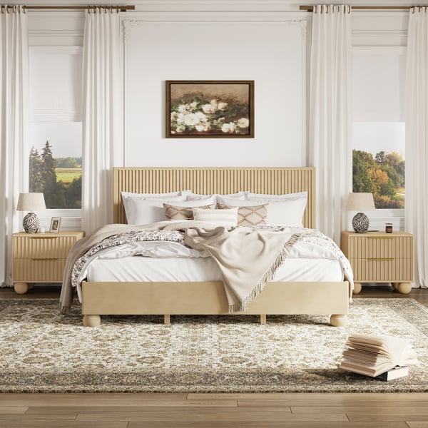 Bolla Modern Solid Wood Queen Size Fluted Bedroom Set