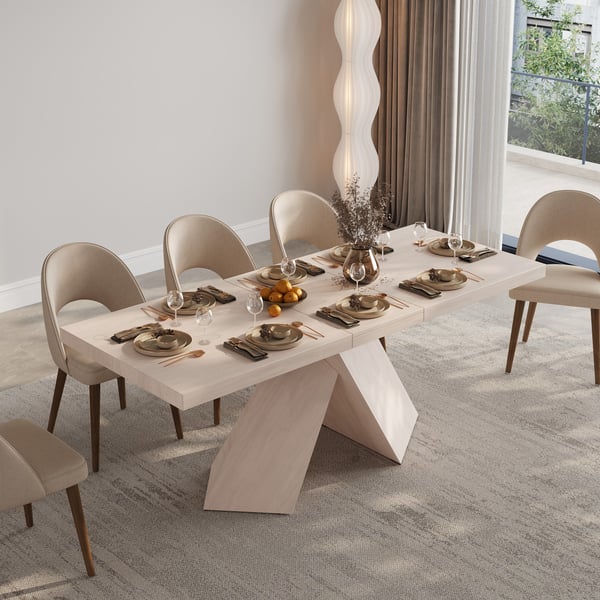 55"-87" Japandi Extendable Dining Table Whitewash Seats 4-8 People