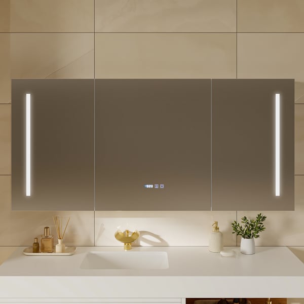 59" LED Bathroom Medicine Cabinet with Anti-Fog, Dimmable Tri-Color Lighting